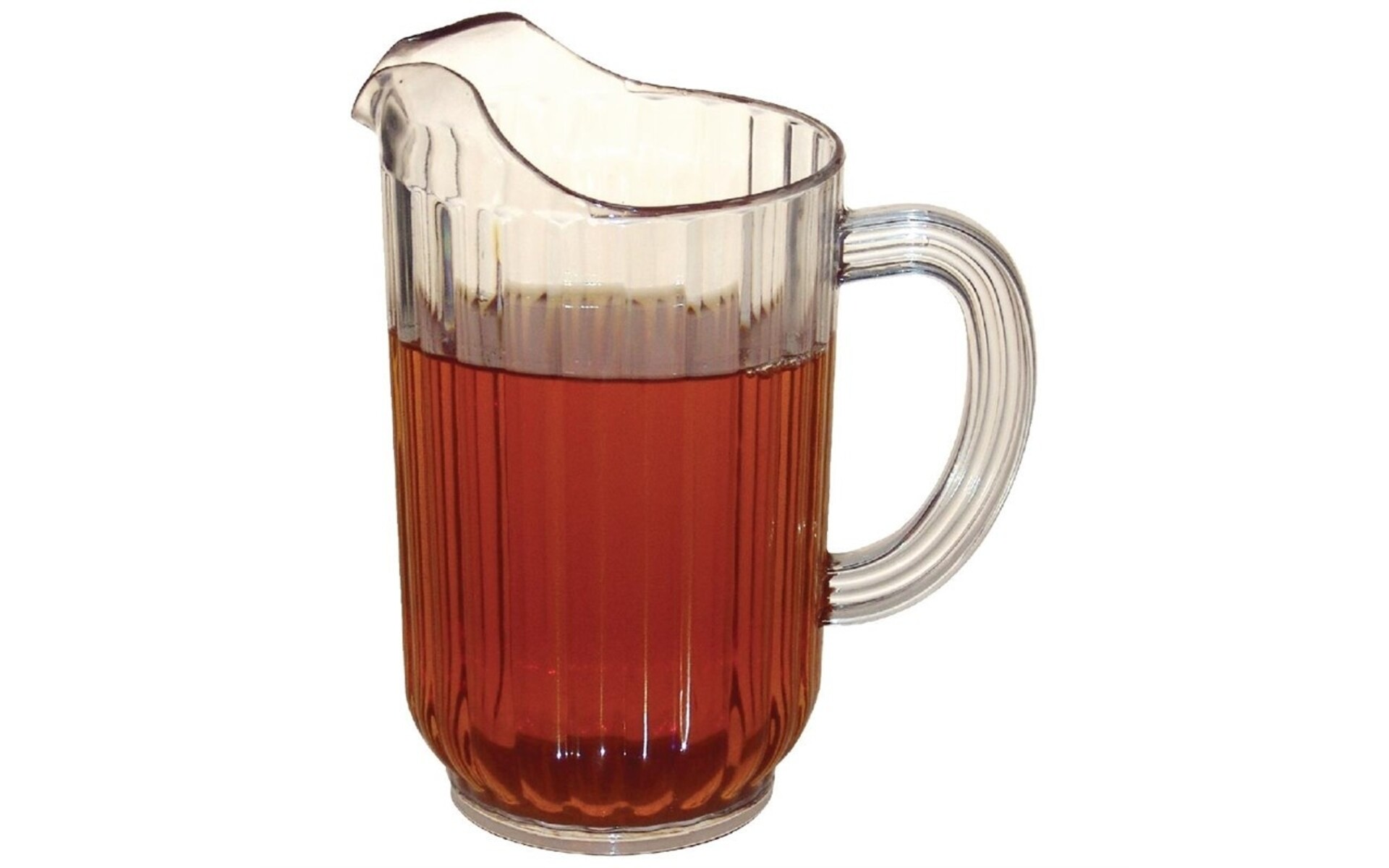 Pichet résistant avec bec verseur anti-gouttes et rebord pour retenir les glaçons. Lavable au lave-vaisselle.