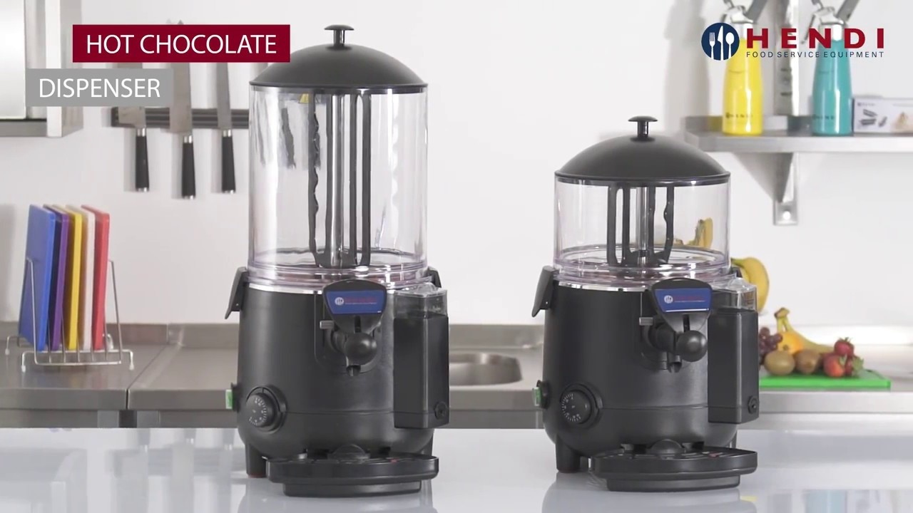 Le chauffement par bain-marie évite que le chocolat brûle. Le fond de la marmite est fait en inox. Les parois sont faits en polycarbonate. Dim. 410x280x(h)580 mm. 1006 Watt .