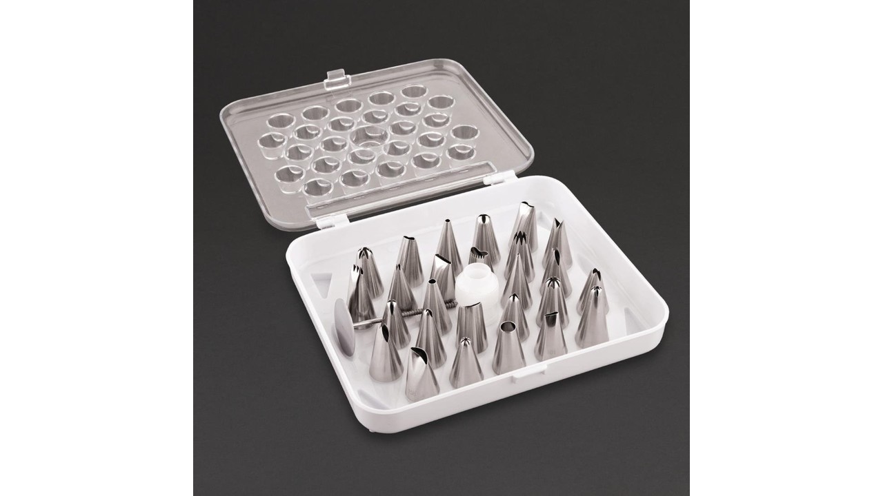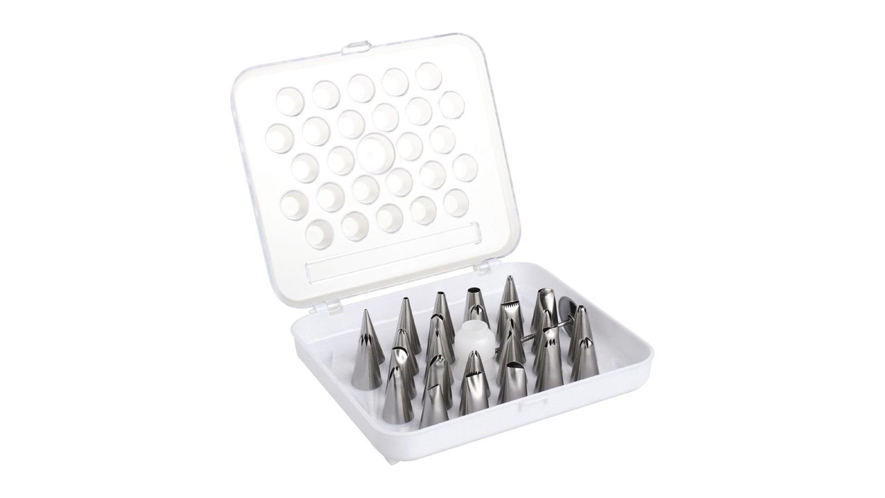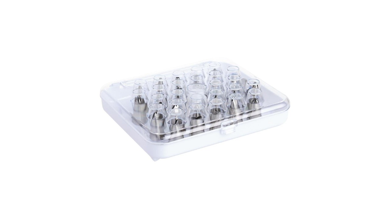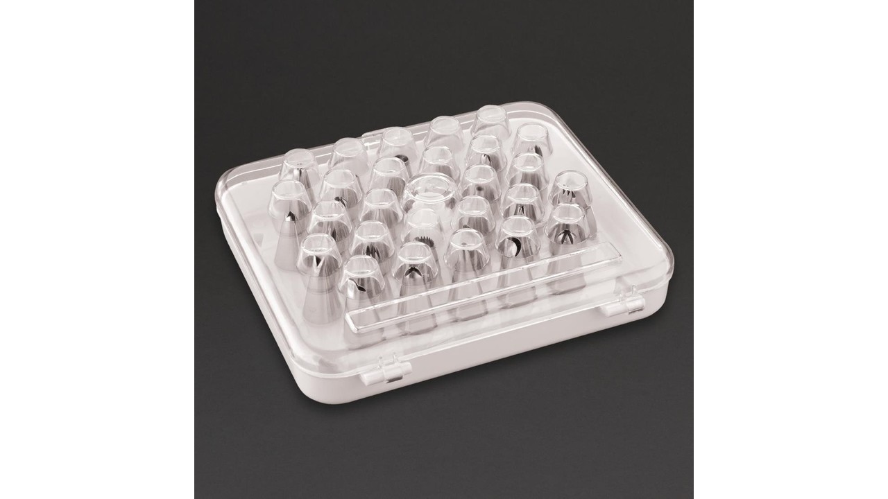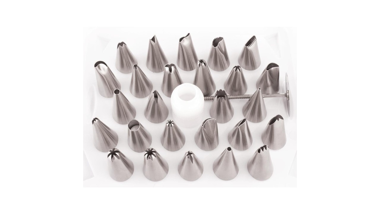 Douilles pâtissières 26 pièces en acier inoxydable, faciles à nettoyer, idéales pour les professionnels comme pour les particuliers. Les bords cannelés sont parfaits pour créer une variété de motifs attrayants sur les gâteaux et friandises.