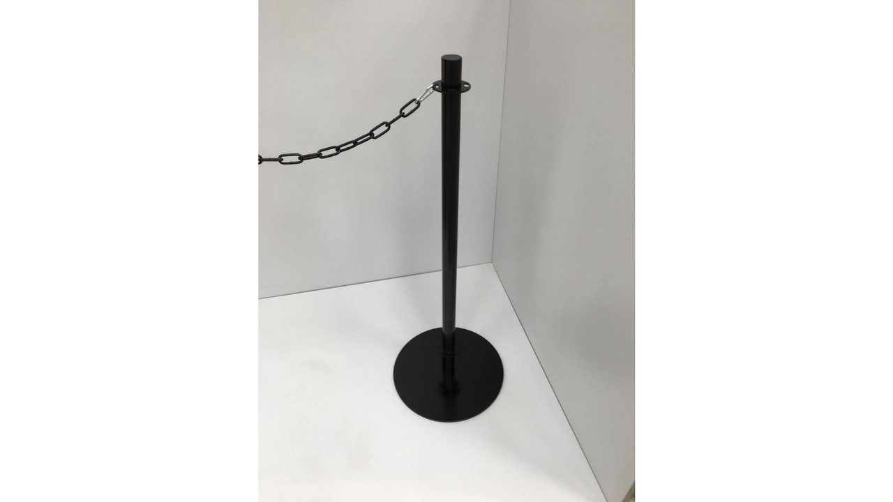 Ensemble de 2 poteaux d'accueils tête plate livré avec une chaine de 1,5 m noir
