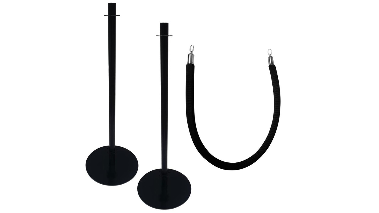 Ensemble de 2 poteaux d'accueils tête plate livré avec corde de 2,5 m noir