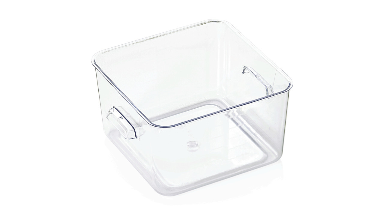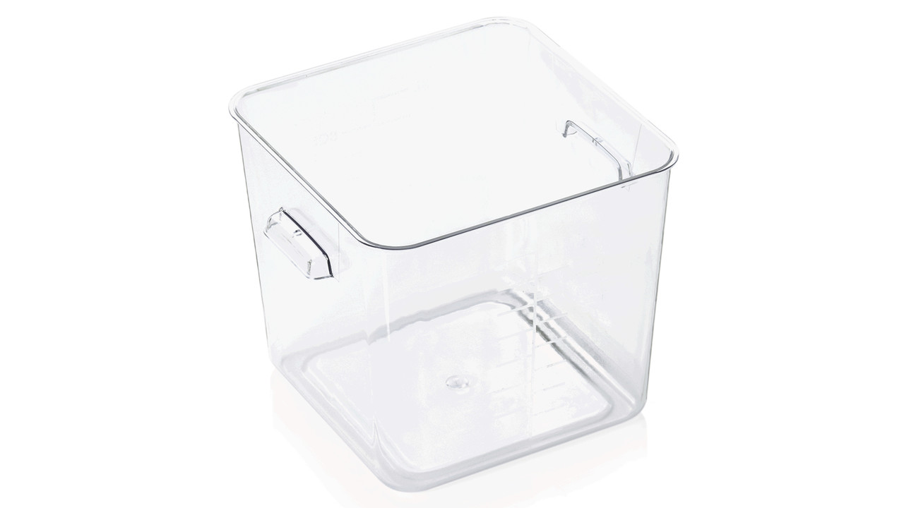 Empilable avec poignées latérales. Jaugée par litre.