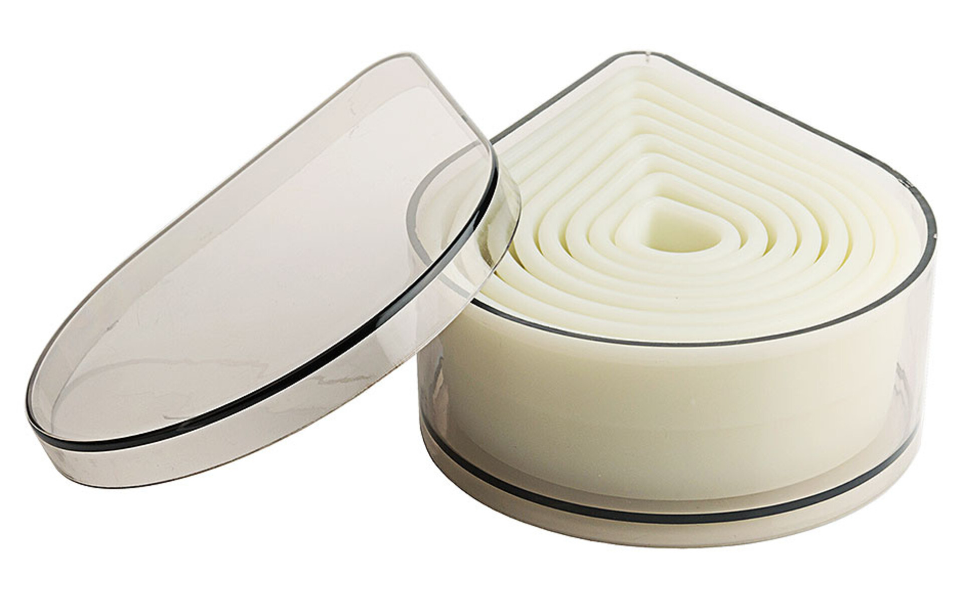 Set de 8 emporte-pièces " goutte de pluie " unis en plastique Exoglass® blanc. Dimensions : 15 mm x 22 mm - 90 mm x 120 mm. Hauteur 3,5 cm. Résistant à la chaleur jusqu'à +160°C, pratiquement incassable.