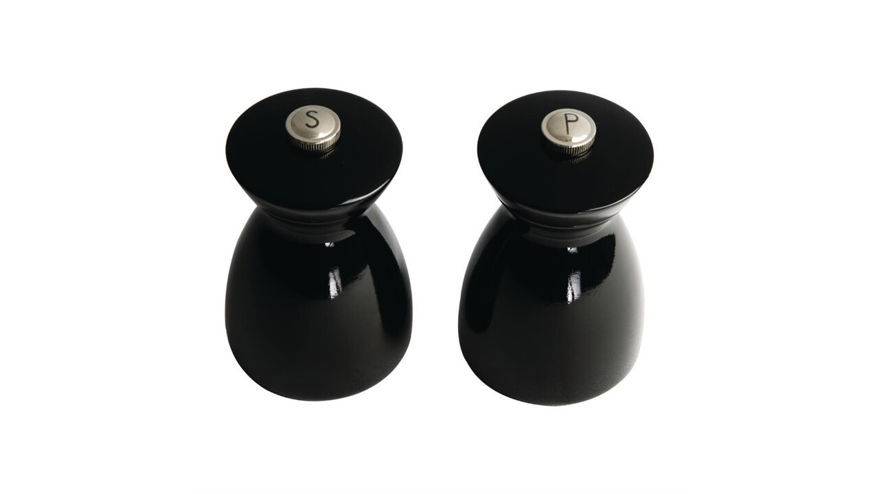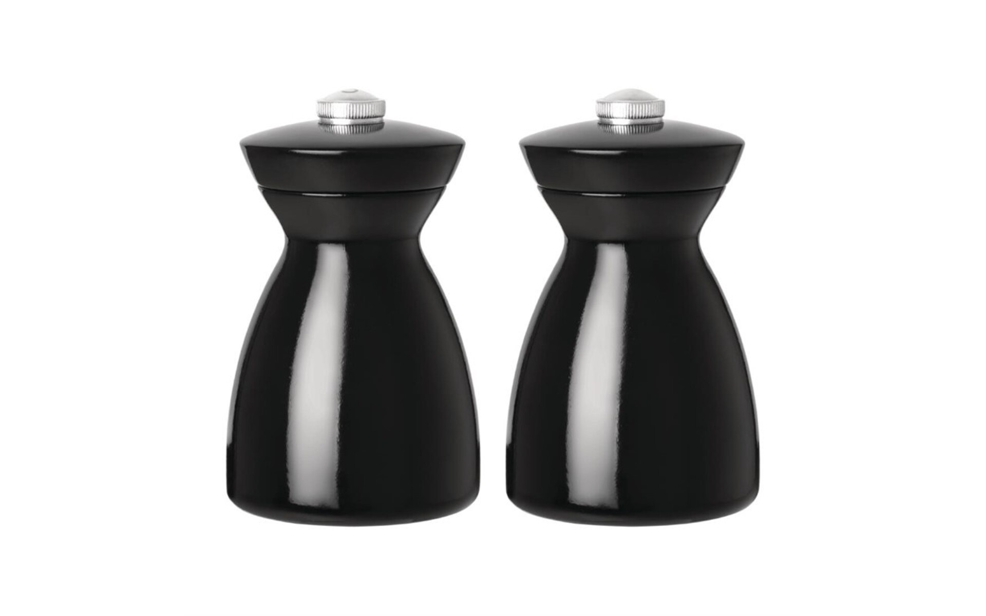 Moulins à sel et poivre Olympia en bois foncé finition chromée de style moderne avec mécanisme en céramique.