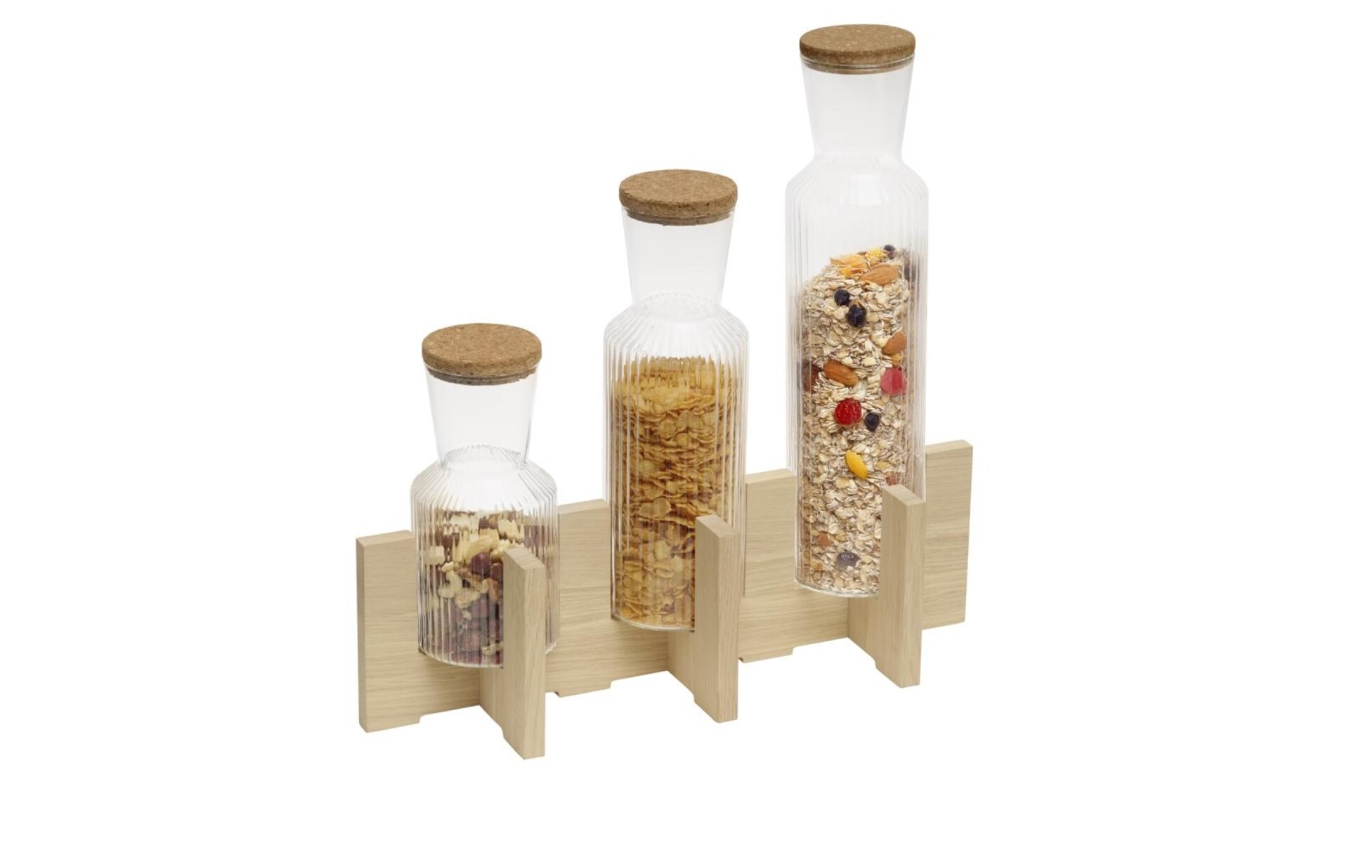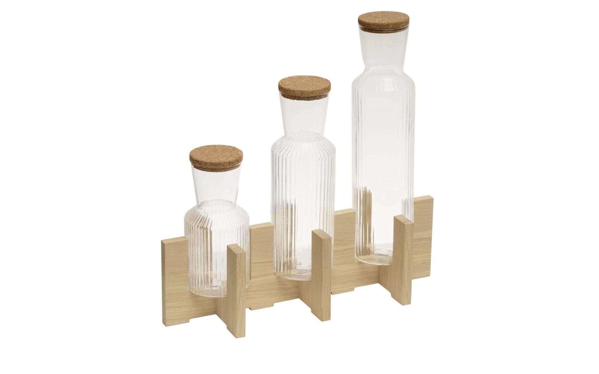 Etagère de buffet livré avec 3 carafes en verre bouchon en liège 0,5 l - 1,0 l - 1,5 l