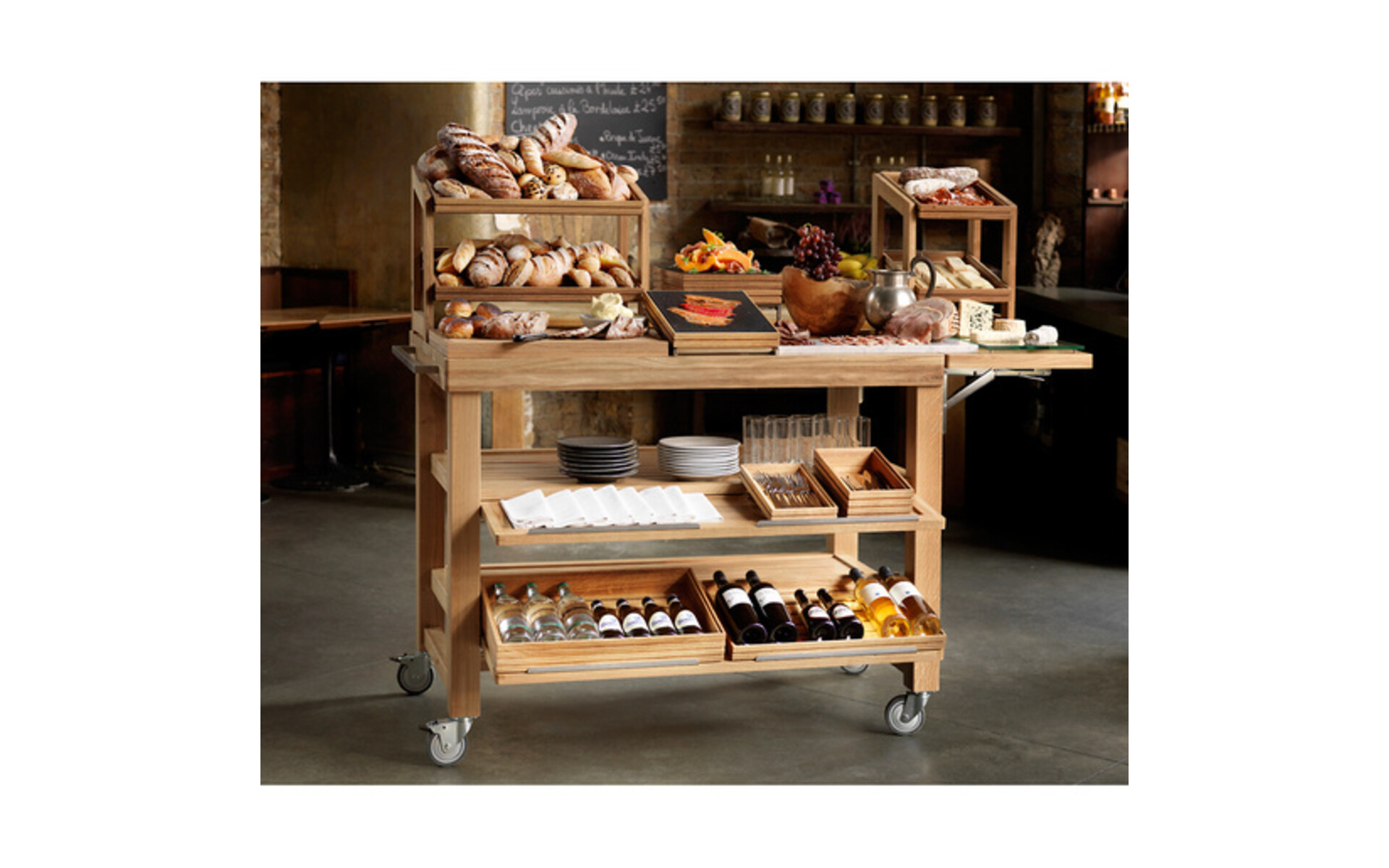 Le chariot dispose de plusieurs tablettes extensibles, offrant un espace de stockage supplémentaire pour un présentoir de nourriture à plusieurs hauteurs et facile d'accès Chariot à 4 plateaux extensibles au lieu de 2 comme sur la photo
