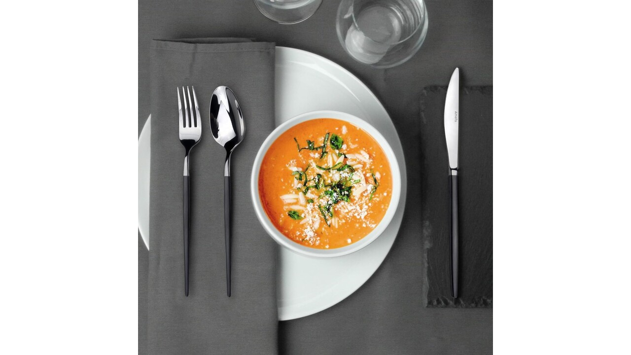Les contours arrondis apportent une élégance pure. Acier inoxydable 18/0 durable. Poids élevé, haute qualité et sensation luxueuse. La finition en PVD noir du manche lui confère un look contemporain. La poignée élégante et moderne offre un confort d'utilisation. Un véritable objet qui attirera tous les regards de vos hôtes.
