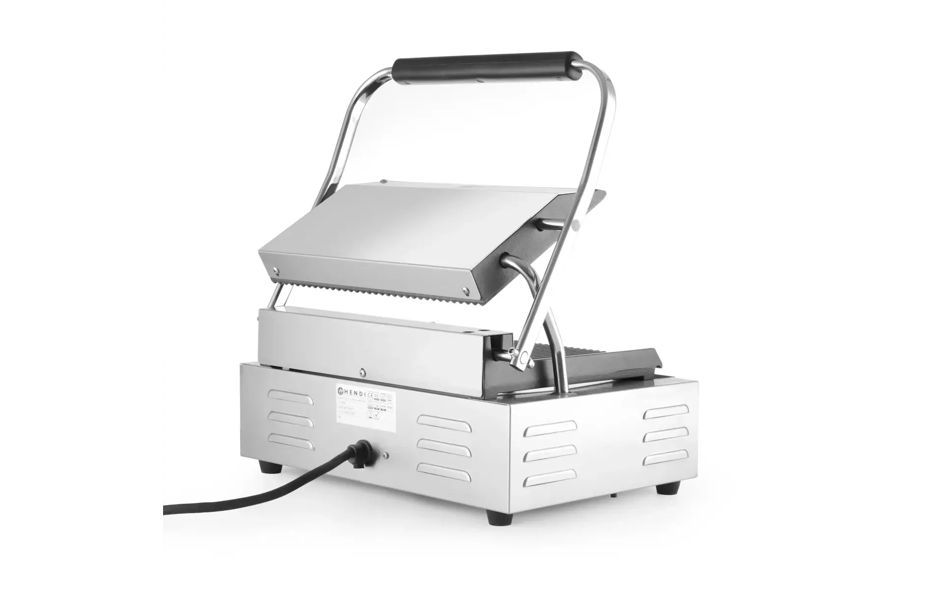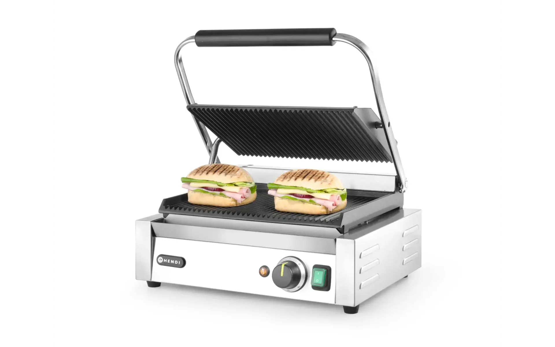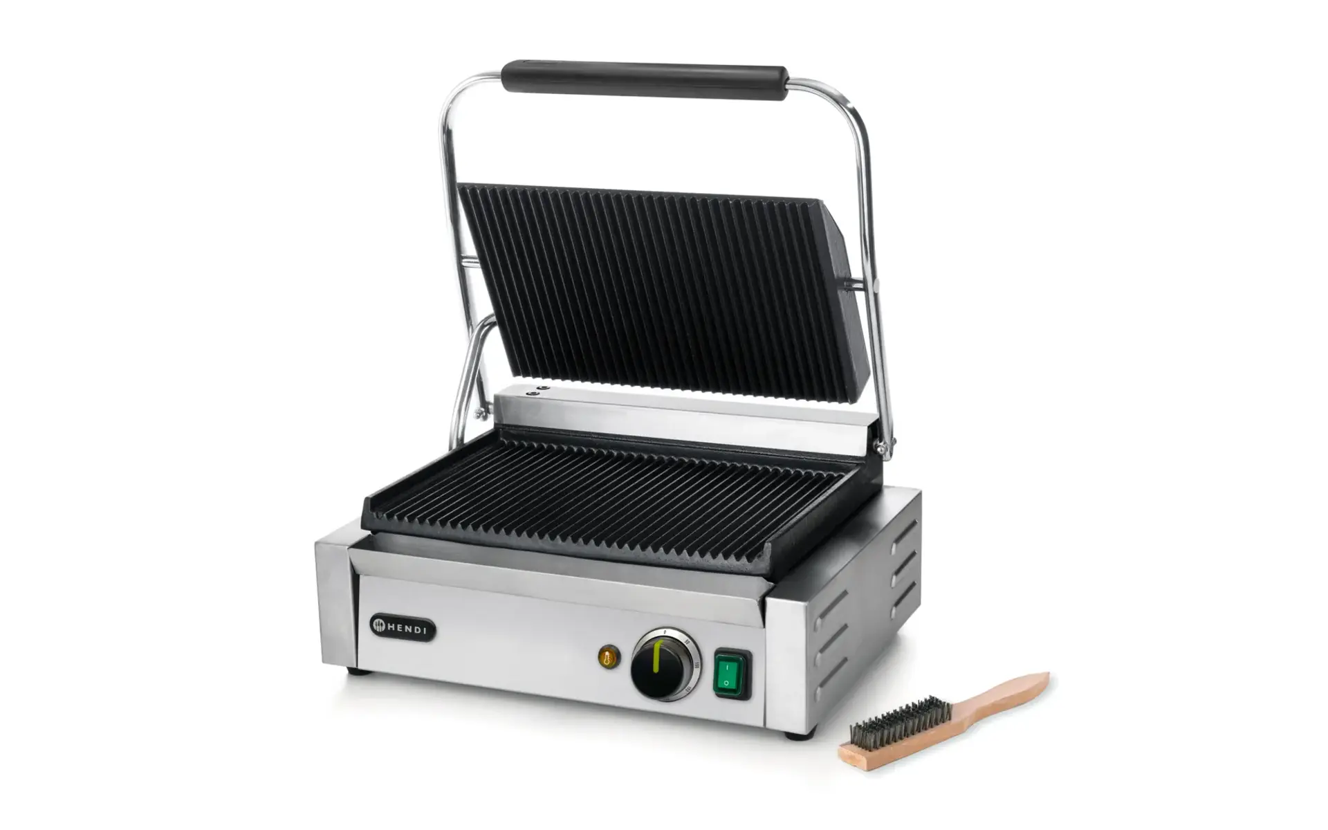 Idéal pour griller et réchauffer pain, viande et légumes. Plaques en fonte, boîtier en acier inoxydable et chauffe rapide. Thermostat jusqu’à 300 °C, ventilation anti-surchauffe, bac récupérateur, grille supérieure verrouillable et brosse incluse.
