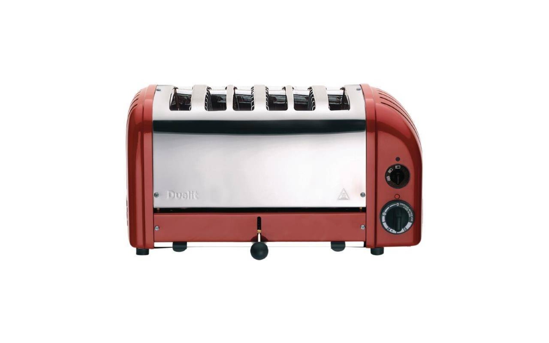 Grille-pain 6 tranches en acier inoxydable pouvant griller de larges tranches de pain et doté d'un levier pour l'éjection.