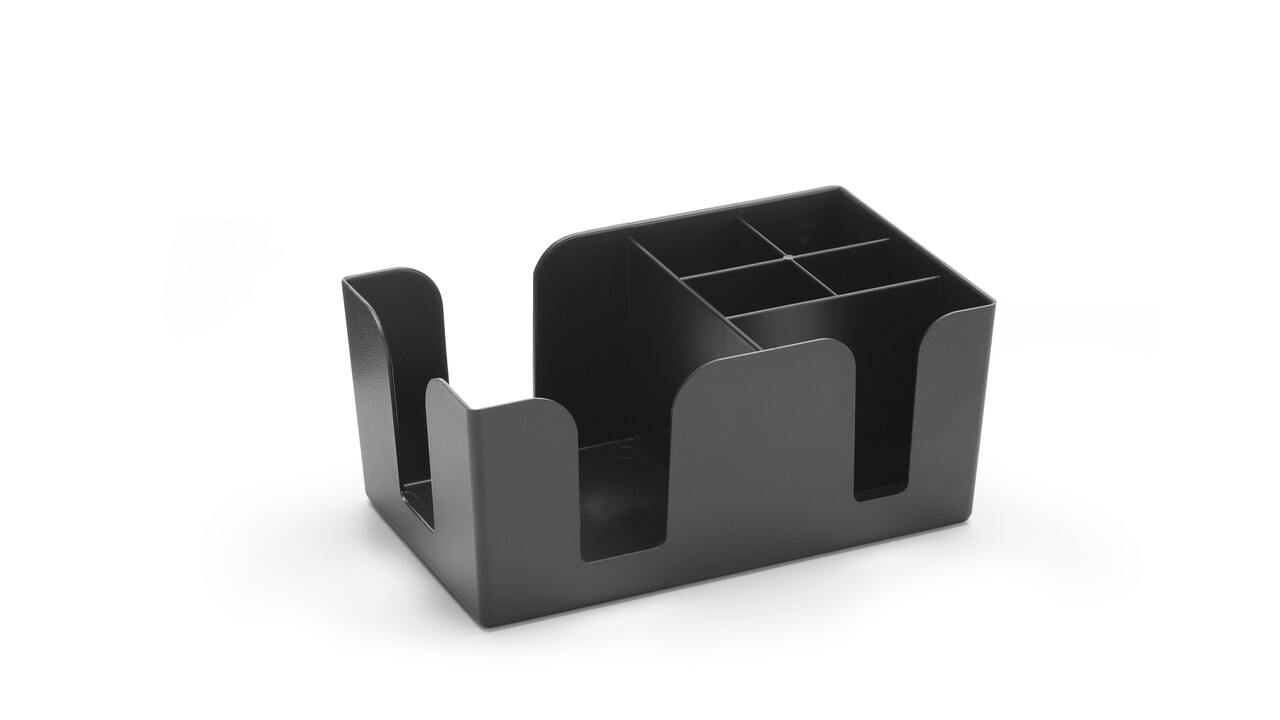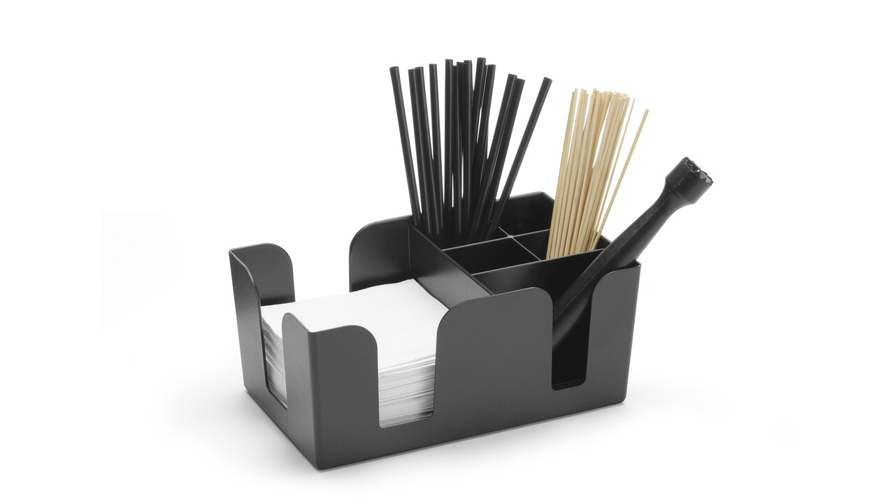 Gardez pailles, serviettes, mélangeurs, etc. à portée de main. Cet organisateur de bar pratique comporte 6 compartiments de tailles différentes et peut accueillir une multitude d’accessoires.