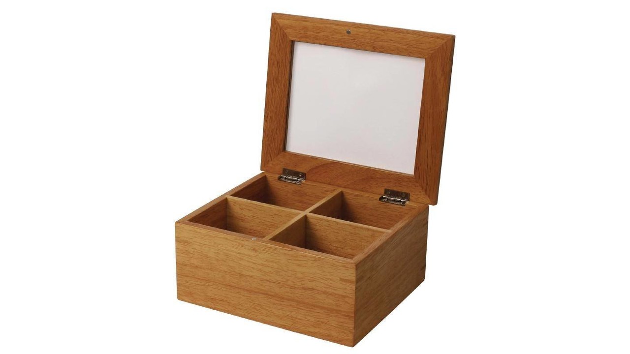 En hévéa pour un rendu et une finition de première qualité. Idéale pour un espace boissons en libre service, où devront être soigneusement présentés les sachets de thé. La boîte possède un couvercle pour conserver la fraîcheur du contenu lorsqu'il n 'est pas en cours d'utilisation.