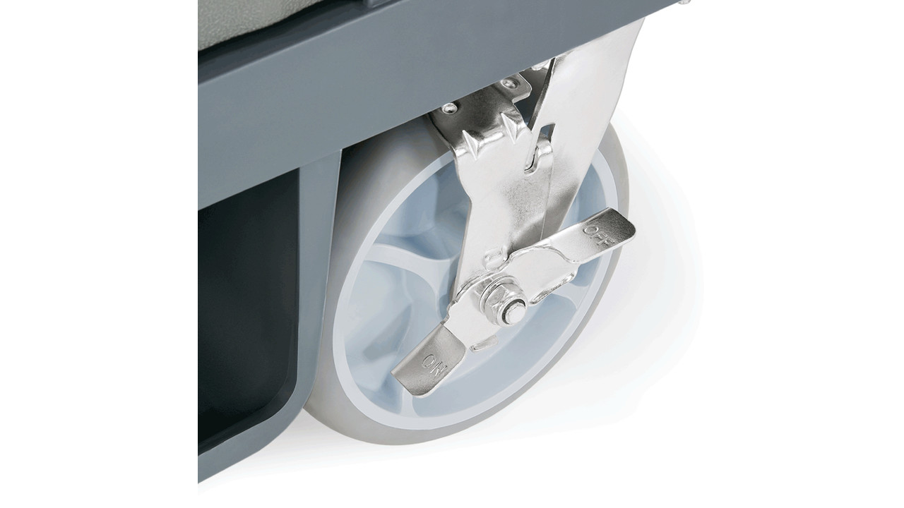Avec niveaux réglables, pare-chocs et roues qui ne laissent pas de traces.