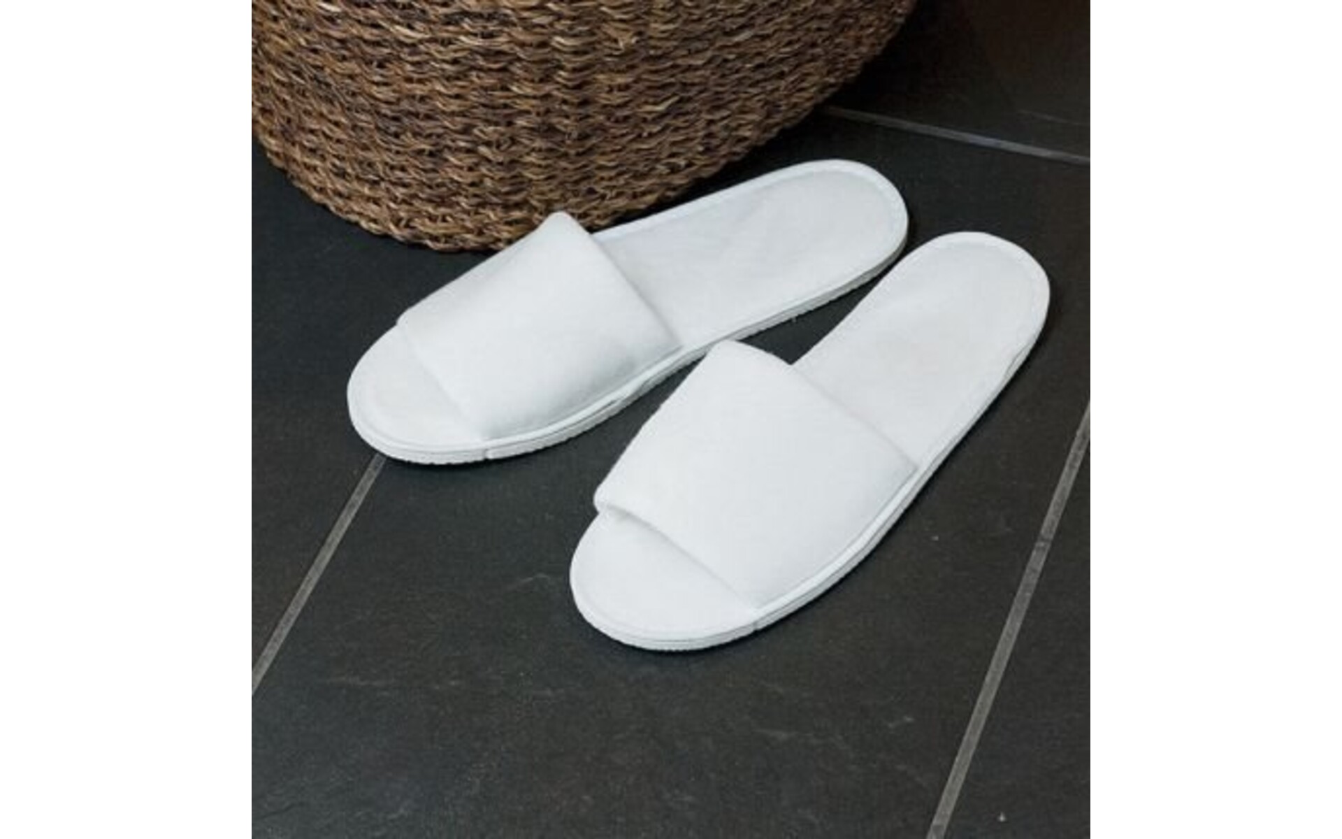 Offre exceptionelle sauf vente entretemps Pantoufles à bout ouvert en éponge blanche boite de 100 paires
