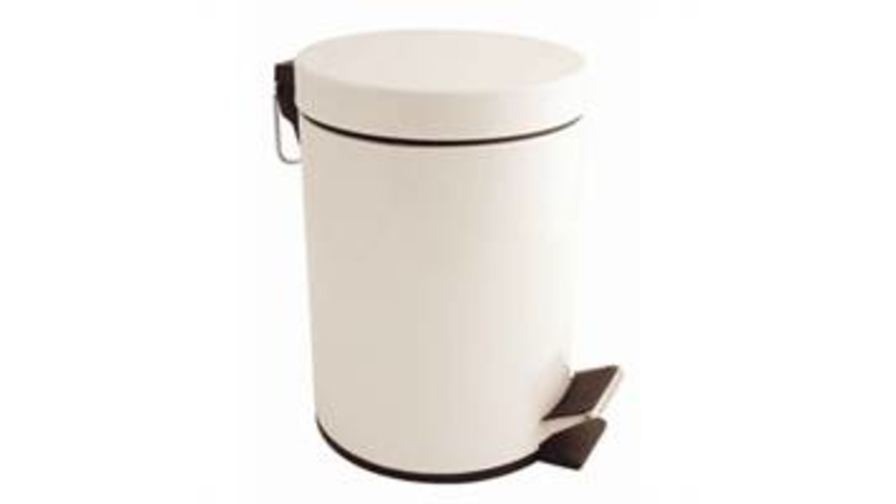 Poubelle à pédale petite et discrète pour les salles de bain. Seau intérieur amovible et poignée de transport.