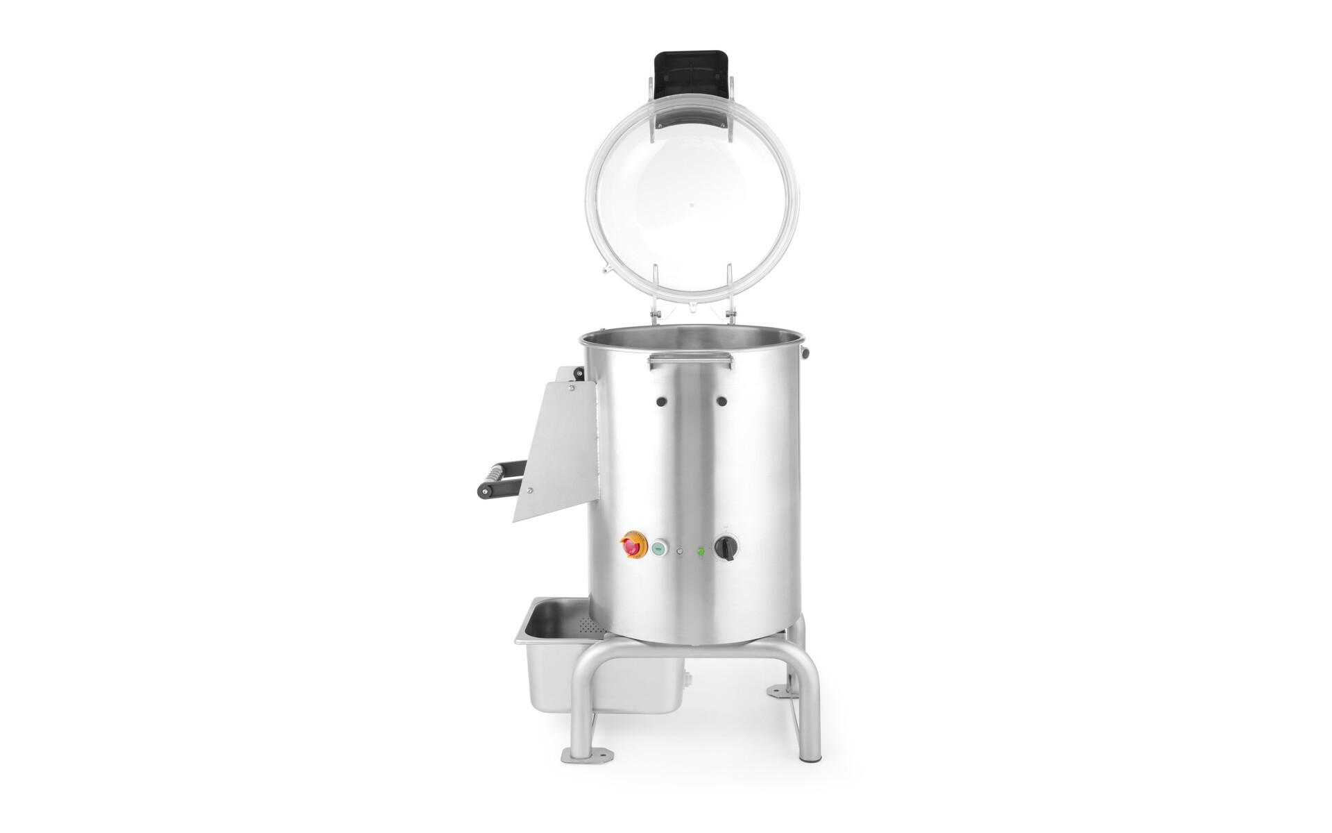 Destiné à un usage professionnel, idéal pour toutes cuisines qui doivent éplucher rapidement des larges quantités de pommes de terre et autres légumes.