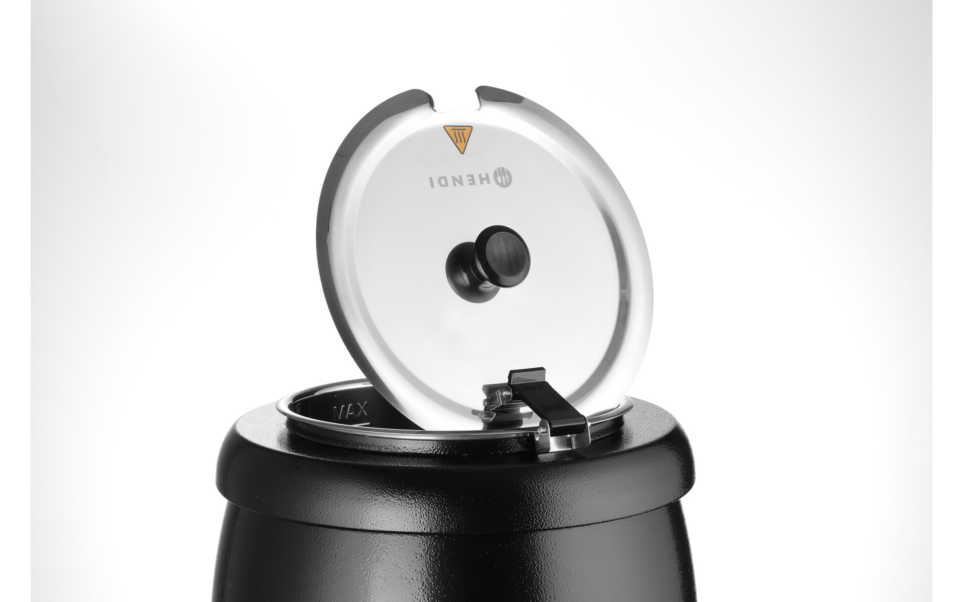 La marmite à soupe HENDI est la meilleure solution pour garder les soupes et les sauces prêtes à être servies sans les brûler. Son design éprouvé permet de gagner de la place sur le buffet et le comptoir. La marmite à soupe est amovible pour faciliter son remplacement et le couvercle est muni d'une encoche pour la louche.