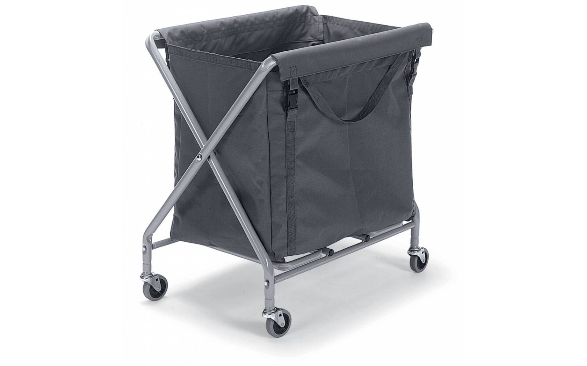 Chariot en X, 1 sac de 150 L. Avec sa structure résistante en époxy, il se plie pour un gain de place optimal.
