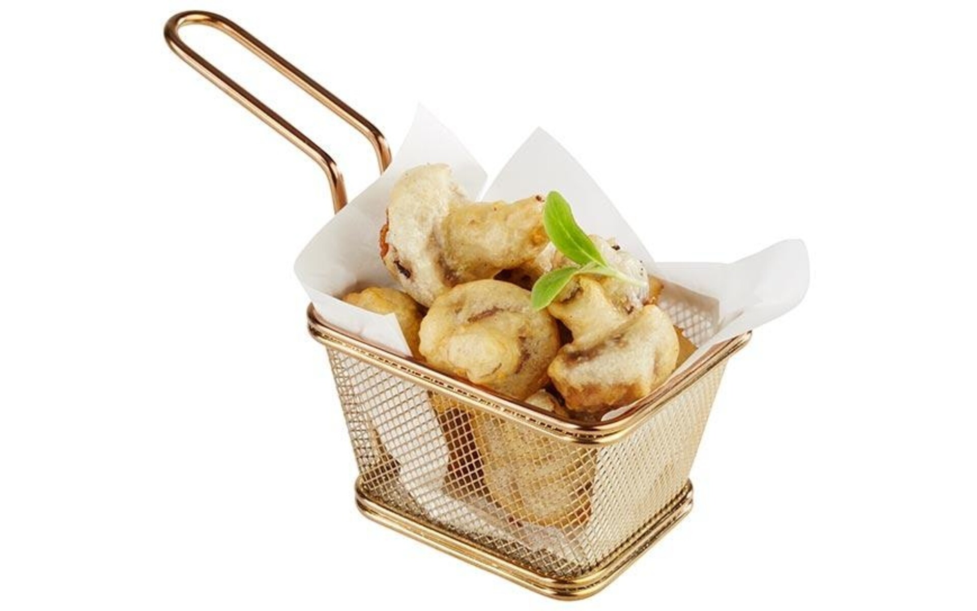 Avec ce panier doré, vous servez des collations originales, des tapas et d'autres plats frits