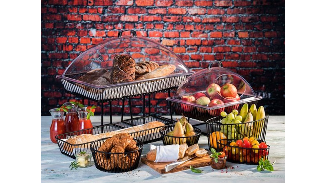 Panier GN 1/1 métal noir "Urban " avec cloche plexi