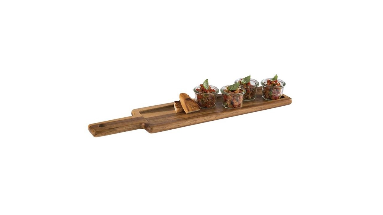 Planche à servir en bois acacia 43 x 12 x h 2 cm avec plateau en ardoise naturel ensemble de 2 pièces