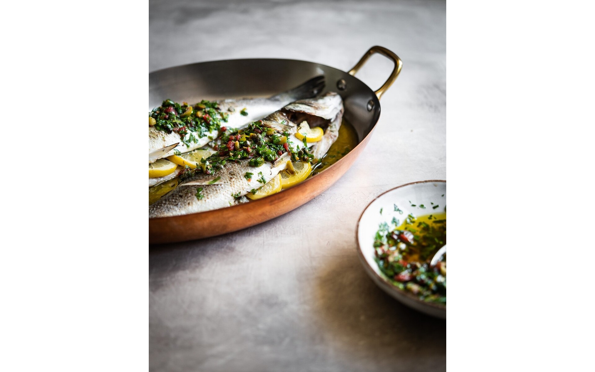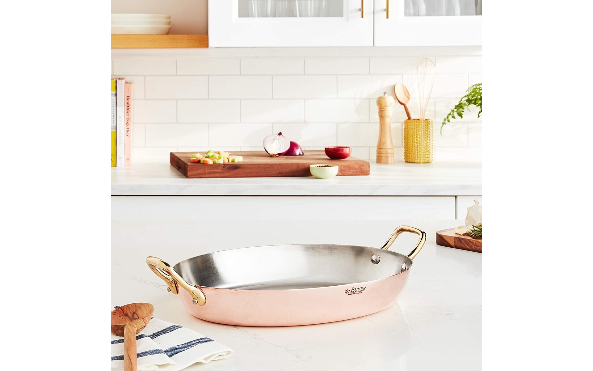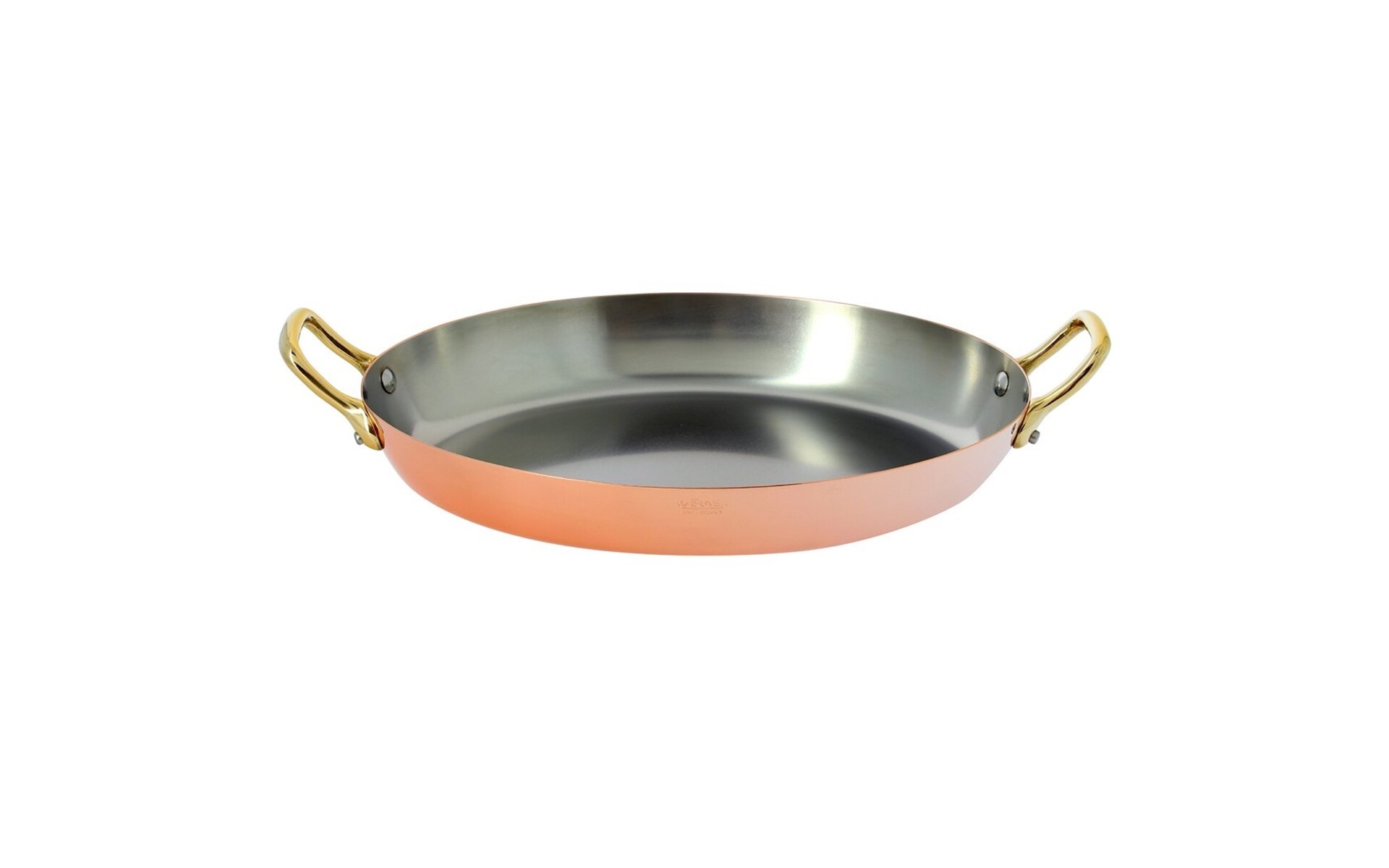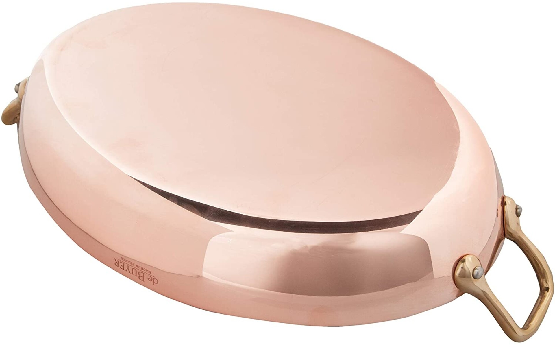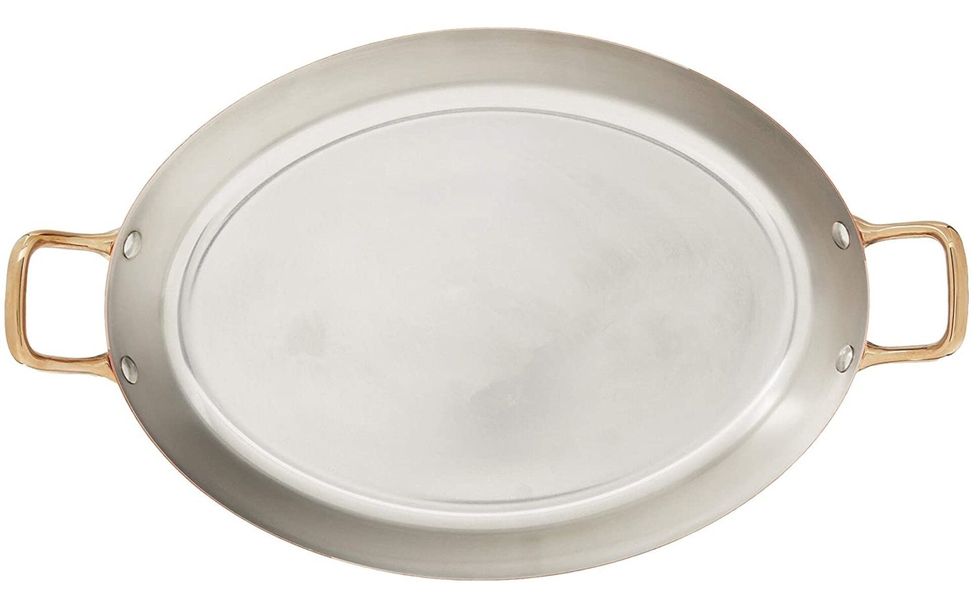 Plat ovale extérieur cuivre 90 % intéreur acier inoxydable 10 % Dim. 32 x 23 cm