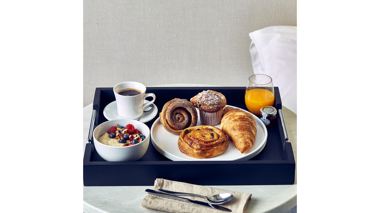 Plateau 45 x 33 cm bois d'acacia noir avec poignées en inoxydable