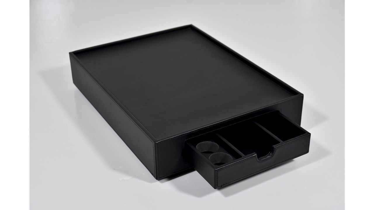 Plateau à tiroir en simili cuir noir pour poser une machine Nespresso