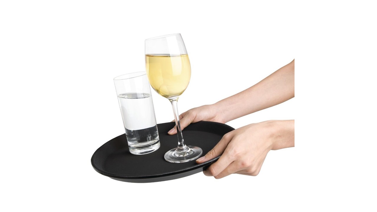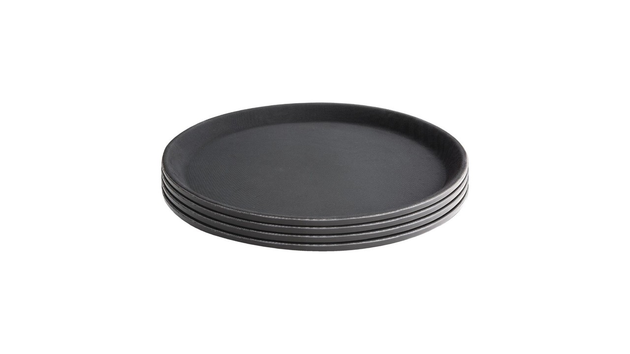 Plateau antidérapant . Dimensions 36 cm diamètre . Non compatible avec lave vaisselle. Lavage à la main conseillé.