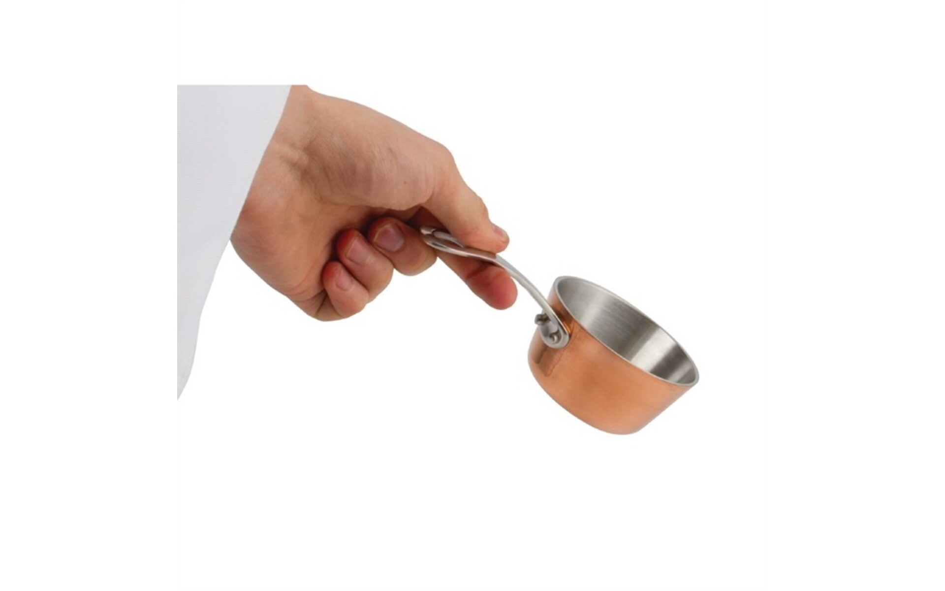 Mini casserole à frire triple épaisseur de haute qualité, intérieur aluminium entouré d'acier inoxydable, et couche extérieure cuivre. La construction 3 couches permet une distribution uniforme de la chaleur et des résultats de cuisson homogènes. Intérieur finition brossée et extérieur cuivre lisse brillant pour un rendu traditionnel et élégant.