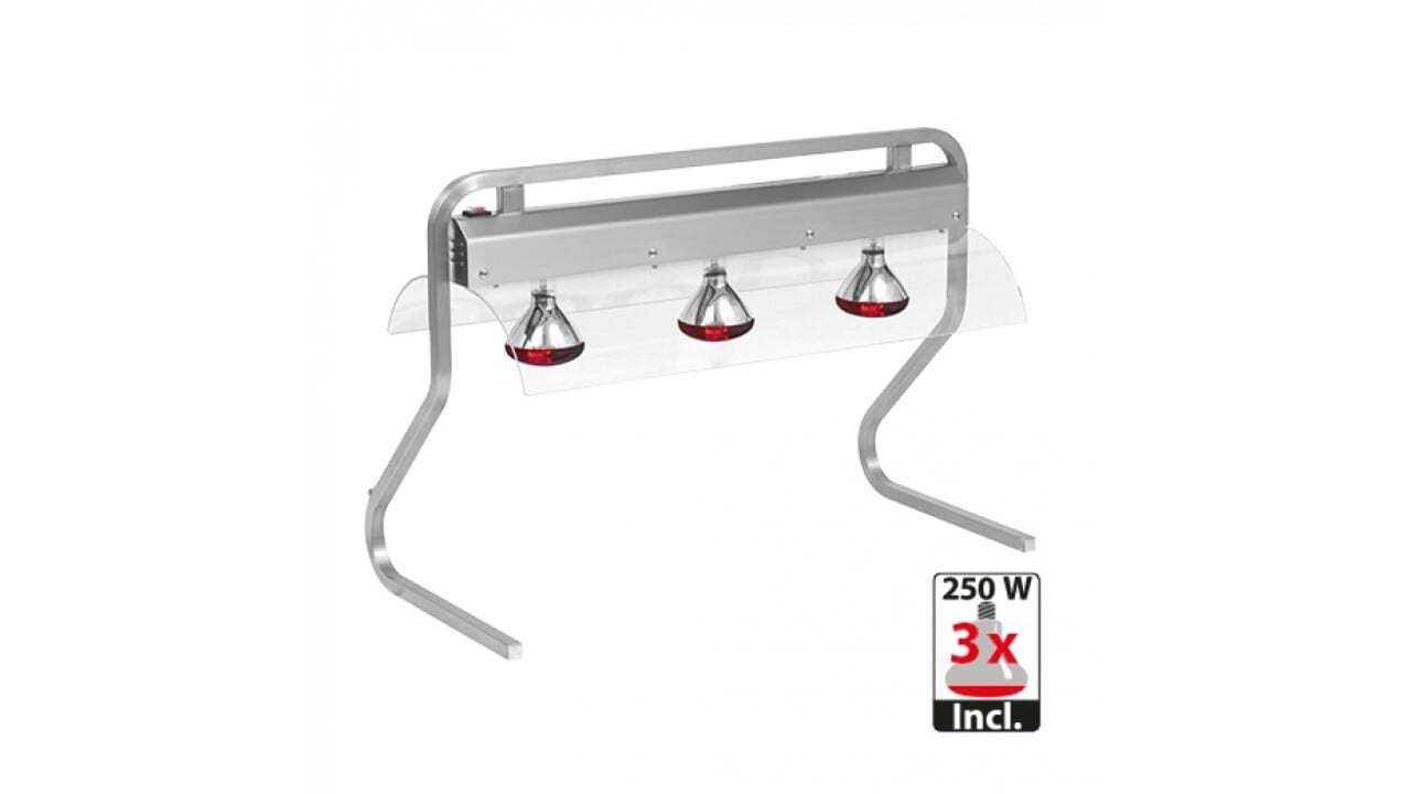 Cette lampe chauffante facile à utiliser maintient plats et collations à la température idéale jusqu’au service. Équipée de trois lampes infrarouges et d’une protection hygiénique en acrylique, elle est parfaite pour les buffets et livrée sans bacs GN.