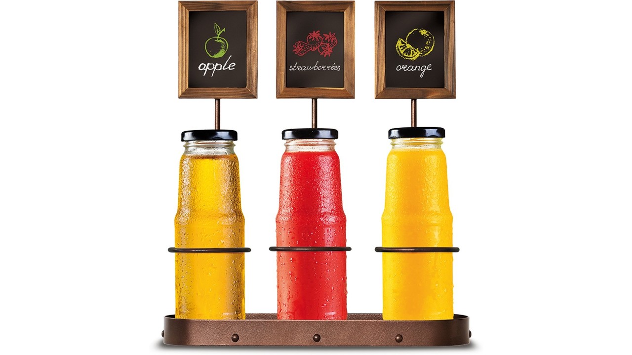 Idéal pour la présentation de trois différents jus sur le buffet du petit déjeuner diametre 93 mm Dim 45x39x h 45 cm