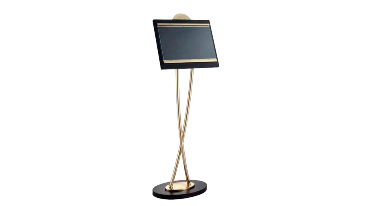 Présentoir à menu DIN A3 avec socle intégré. Noir / Laiton doré