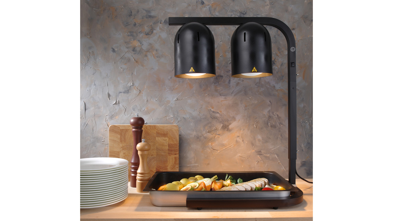 Portique chauffe-plat avec 2 lampes infrarouges aluminium noir