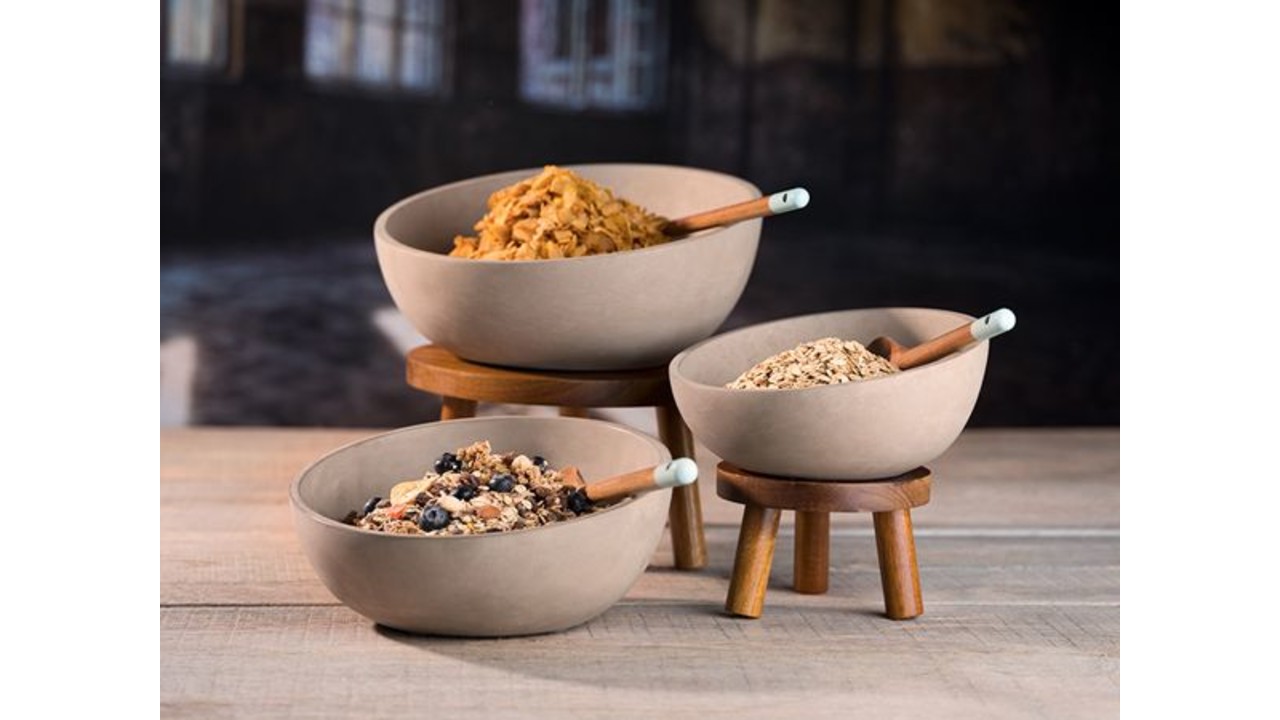 Tous les saladiers ont des pieds anti-adhésif. Présentoir idéal pour céréales.
