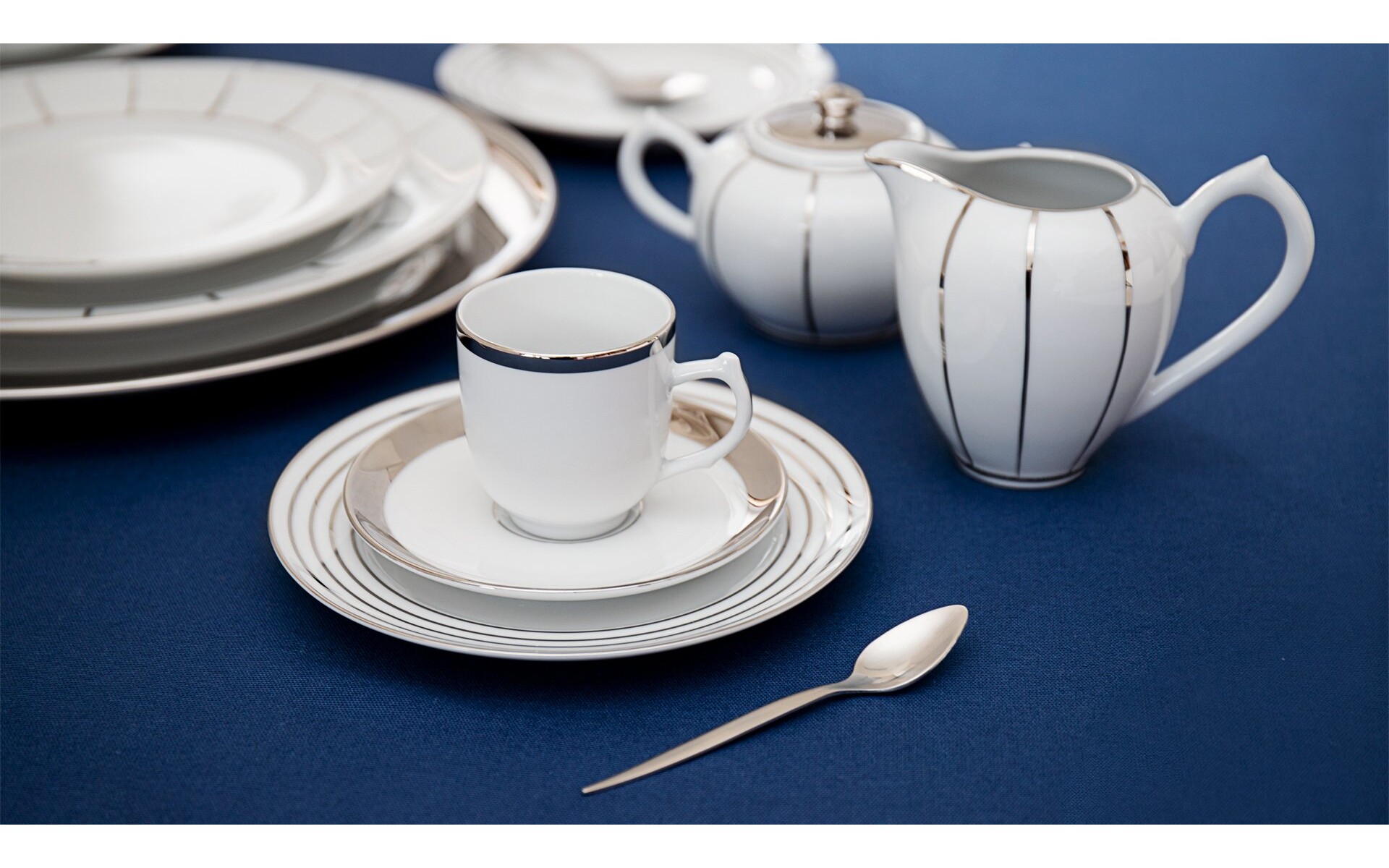 Conçue par Patricia Gonçalves, la collection Eccentric est une élégante vaisselle avec une décoration en platine, surmontée de porcelaine blanche qui met en valeur ses courbes délicates. Son style gracieux et intemporel en fait l'incarnation du luxe.