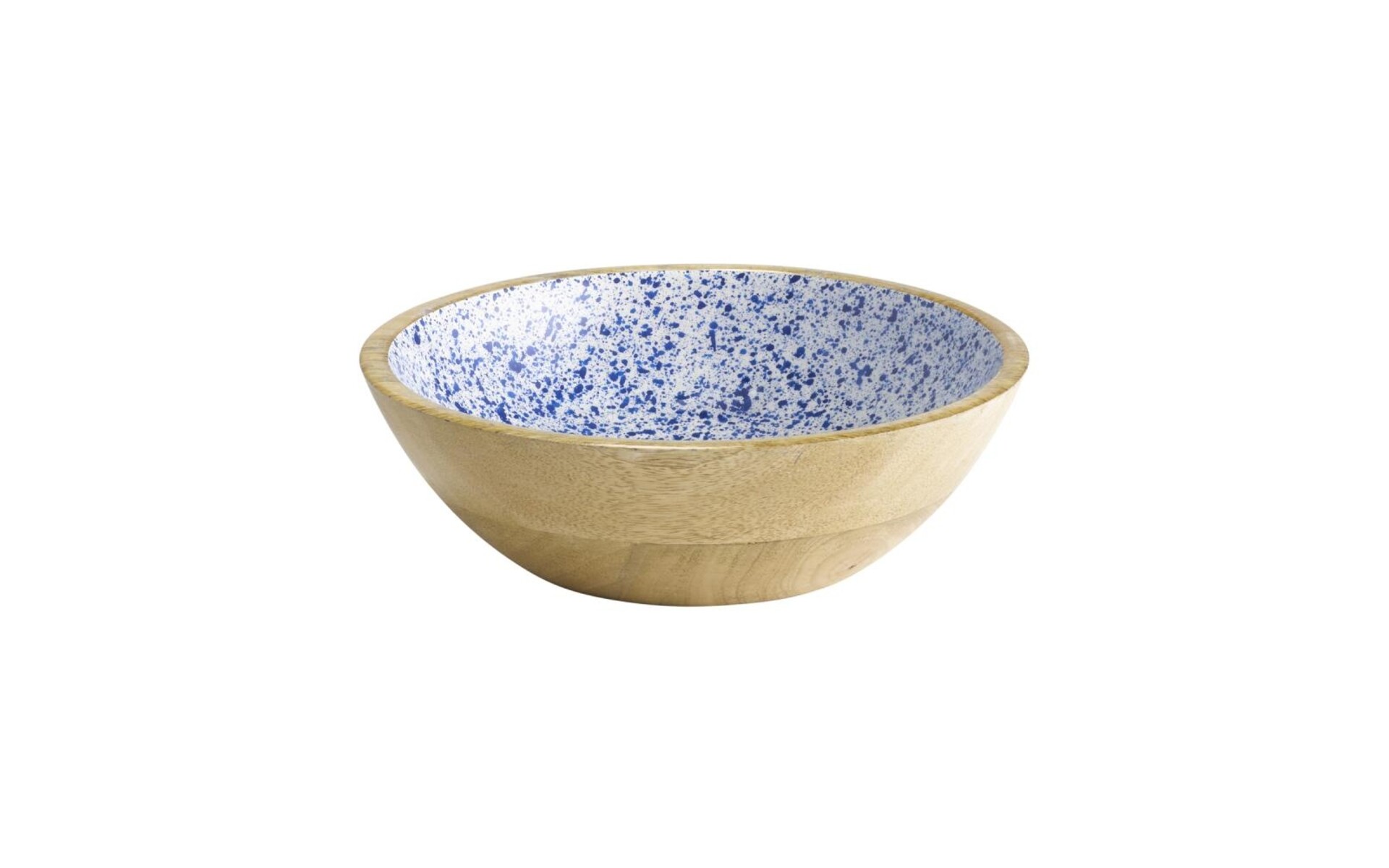 Dimensions : Ø 24 cm. Contenance : 1,1 litre. Hauteur : 7,5 cm. Bol empilable en bois de manguier, fabriqué artisanalement et revêtu intérieurement de résine époxy. Ne passe pas au lave-vaisselle.