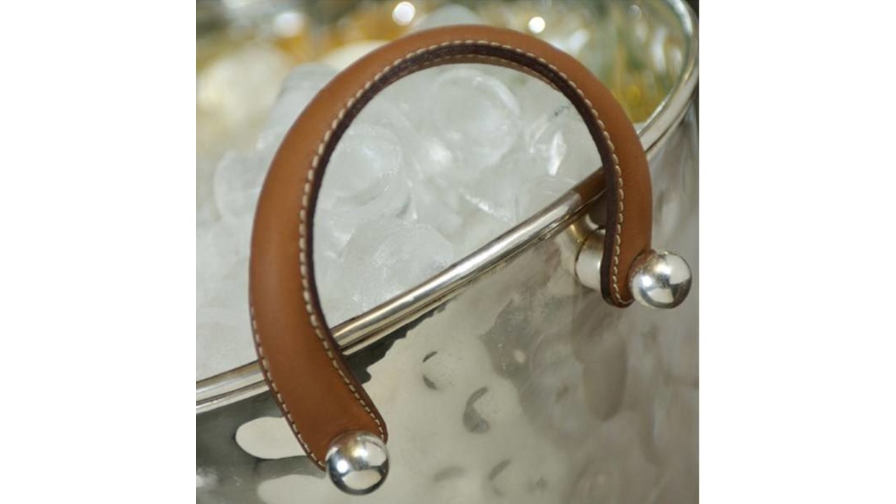 Seau à vin & champagne XXL en inox martelé avec anses en simili cuir brun