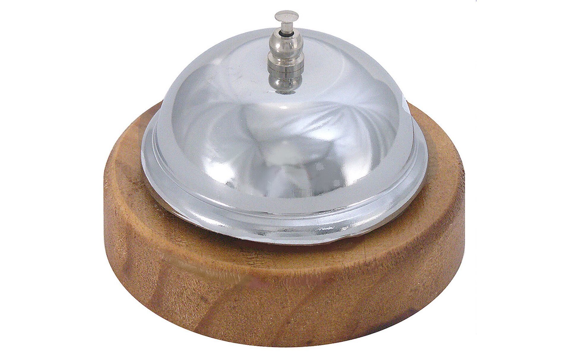 Sonette de réception en metal cuivré sur socle en bois