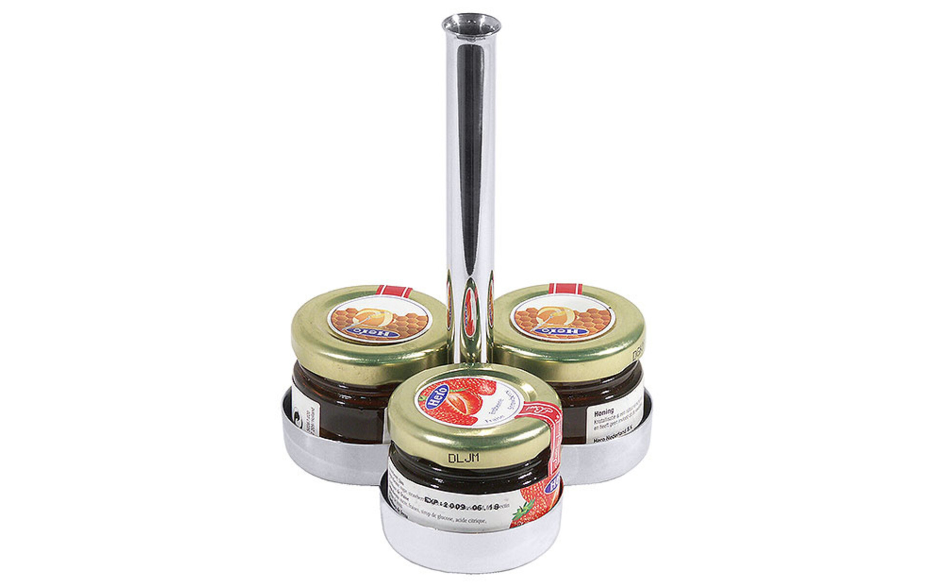 Support 3 pots à confiture au centre un soliflore...