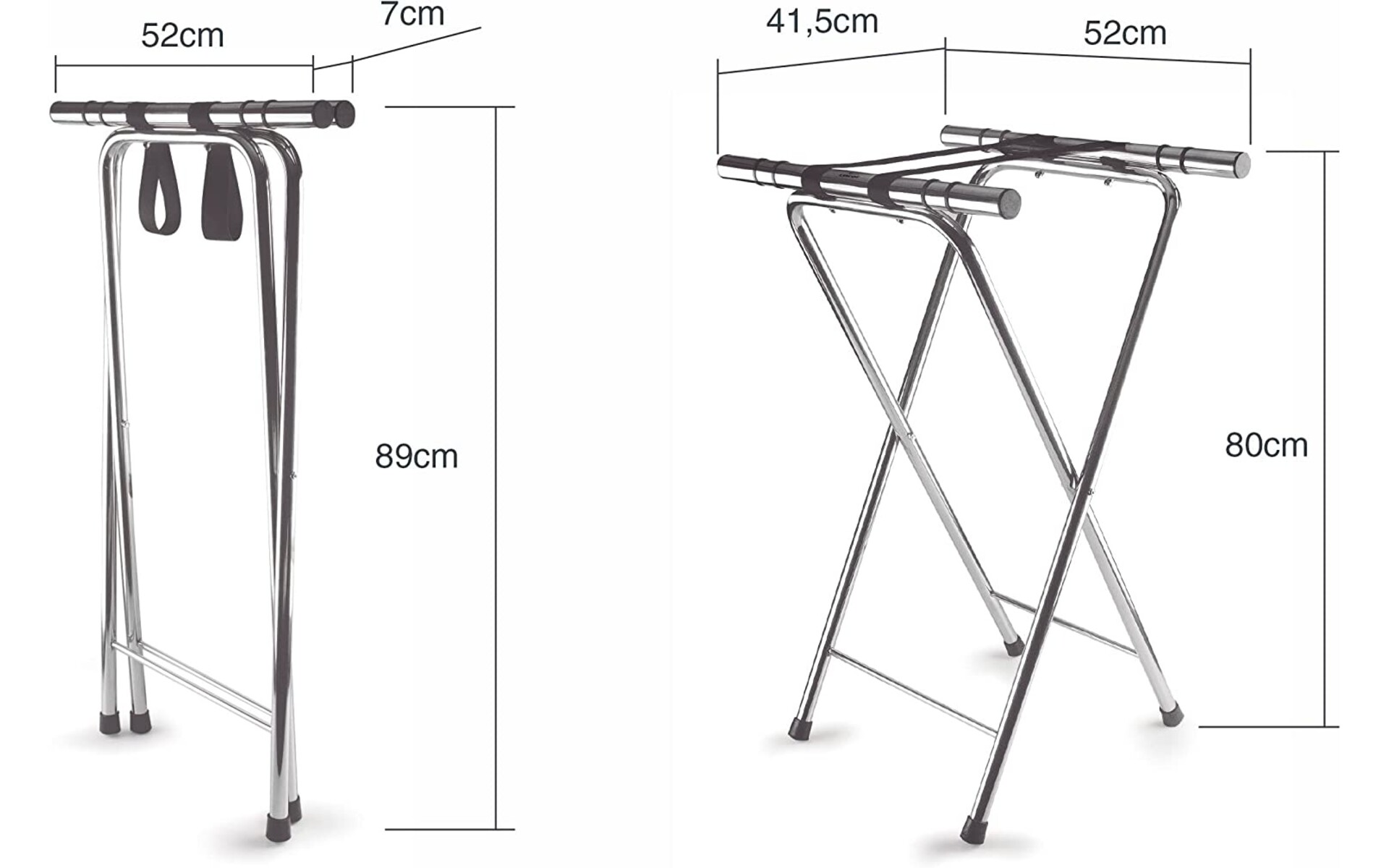 Avec sangles en nylon noir. Pliable jusqu'à 7 cm. Dimensions: 41,5 x 52 cm. Hauteur totale: 80 cm. Idéal pour poser le plateau art. Nr 19209590 ou art. N° 162.