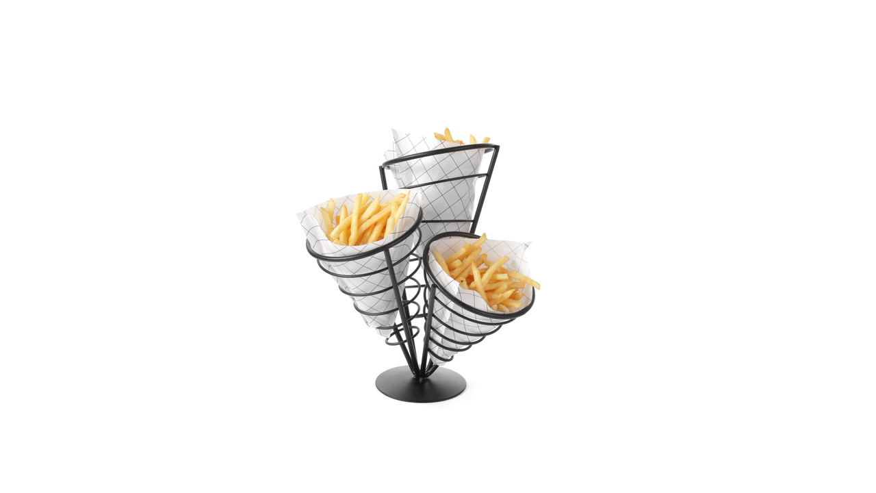 Finition noire idéal pour servir 3 sachets de frites et snacks