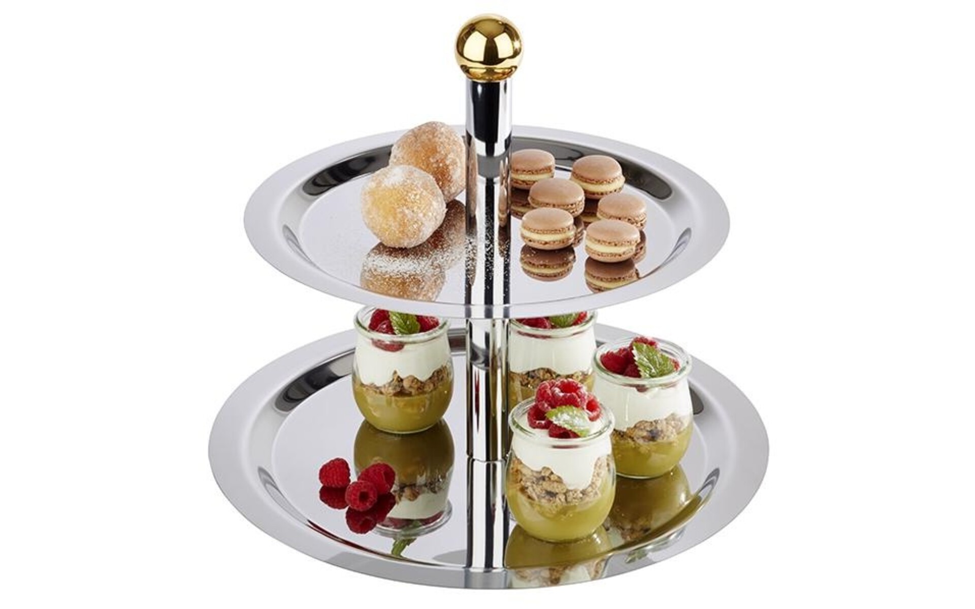 Diamètre 32 et 38 cm hauteur 30 cm Acier chromé avec bouton doré