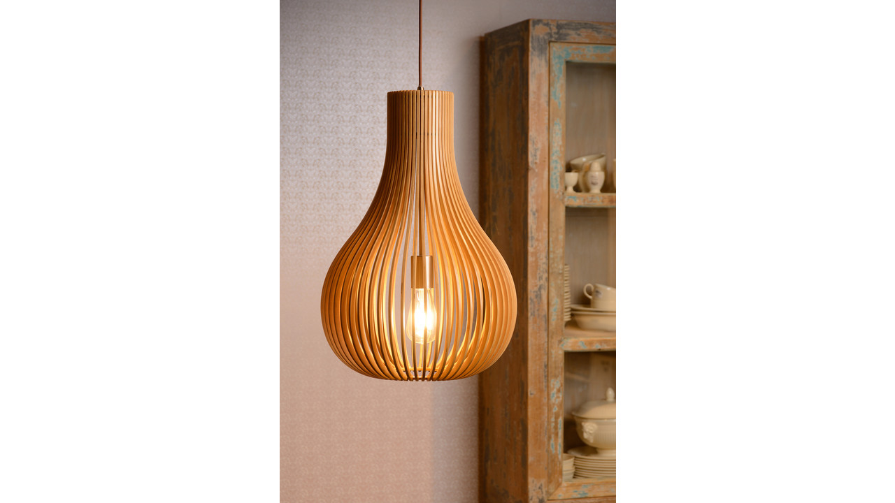 Suspension - Ø 38 cm - Empoule 1xE27 inclus - Bois clair