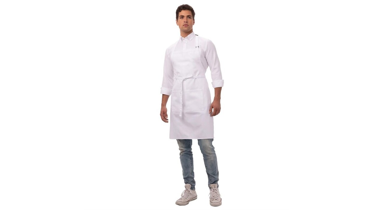 Tabliers polyester-coton avec tour de cou réglable pour une tenue parfaite. Bavette renforcée, convient parfaitement pour le service ou la cuisine.