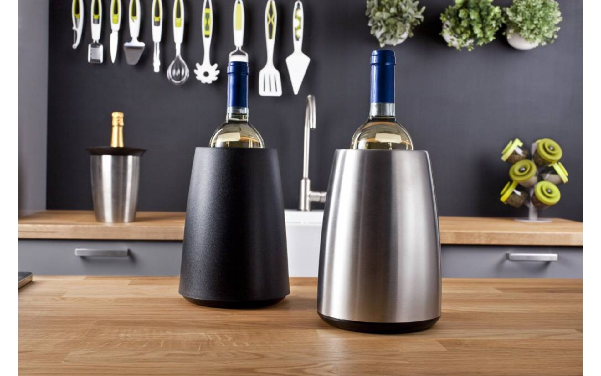 Le seau Wine Cooler refroidit instantanément le vin sans glaçons. Il contient un refroidisseur Rapid Ice de la taille des bouteilles de vin 75 cl qui peut refroidir la bouteille en seulement 5 min et la conserver fraîche pendant des heures. Ne refroi...