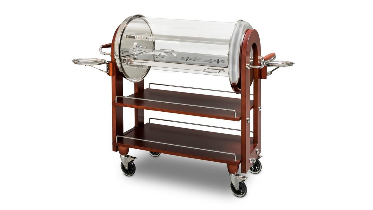 Chariot à 4 étages. Dimensions 115 x 52 x H 125 cm. Poids : 90 kg. Ce chariot de luxe est fait en bois disponible en bois walnut, mahogany, rosewood ou wengé.