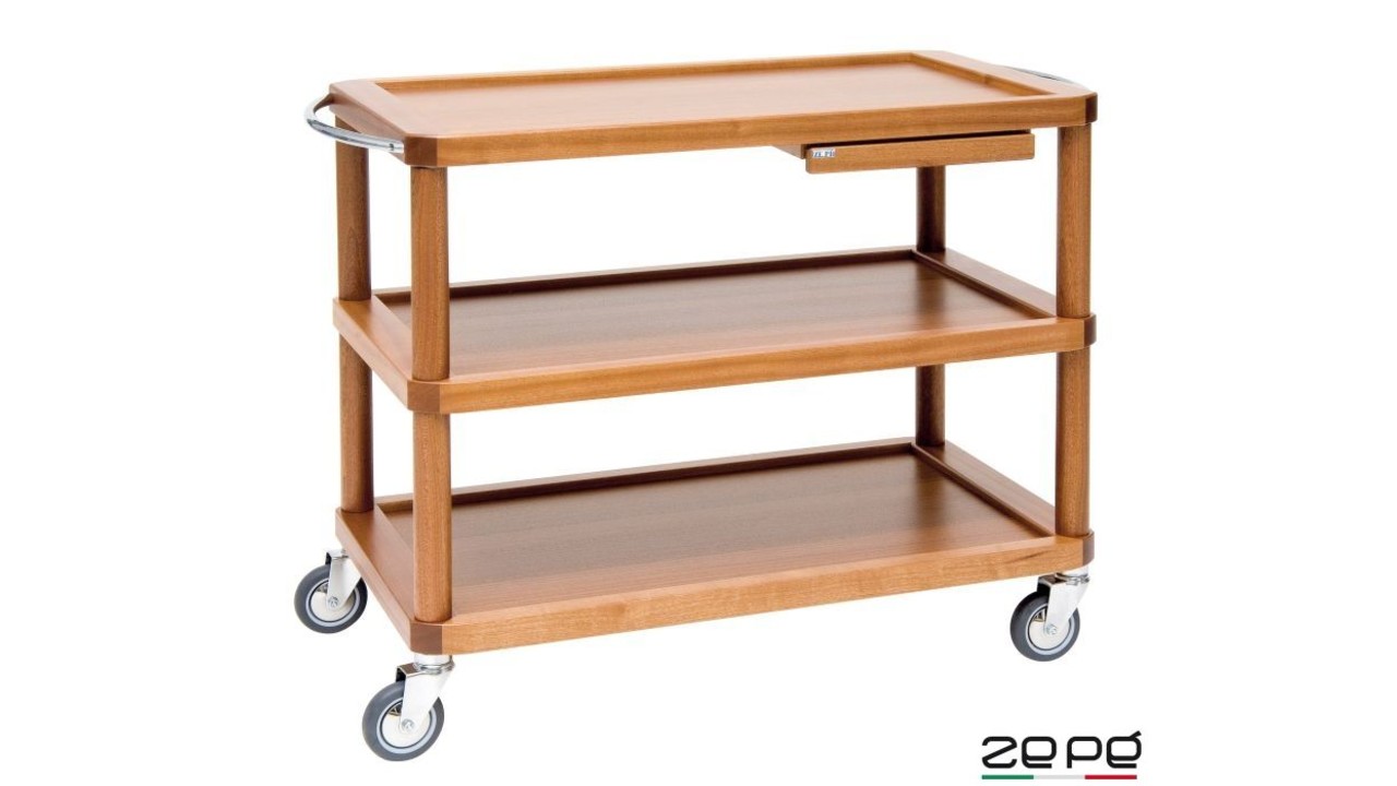 Chariot de service polyvalent à trois niveaux en bois massif