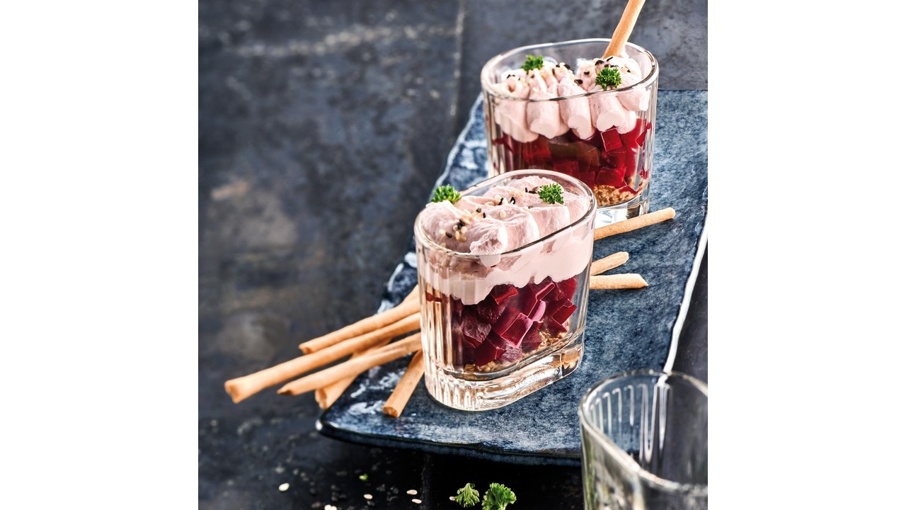 Getint met Art Deco-inspiratie, herneemt het Riviera amuse glaasje op elegante wijze de
