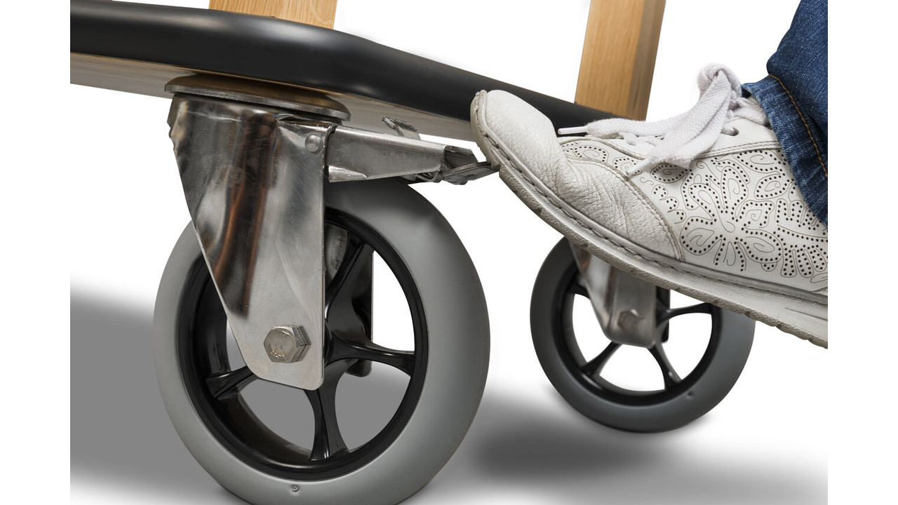 - grote wielen met remmen vergemakkelijken het verplaatsen van zware bagage op een oneffen ondergrond