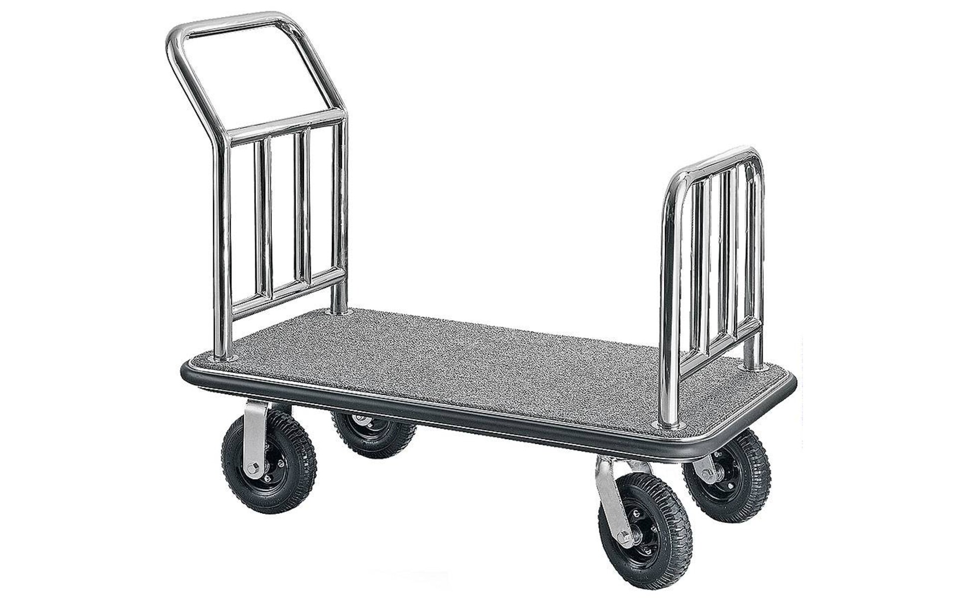 Roestvrij staal frame, 200 mm zwarte opblaasbare wielen, grijs tapijt, met volledig rondom kunststof bumper